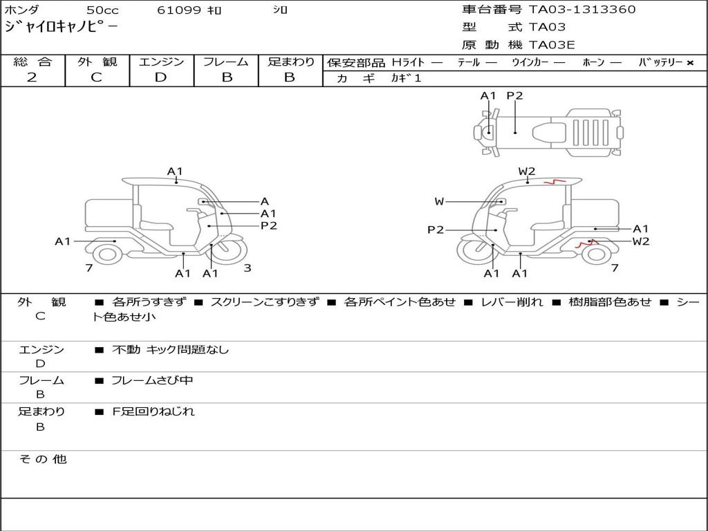 | Номер рамы / VIN | TA03-1313360 |