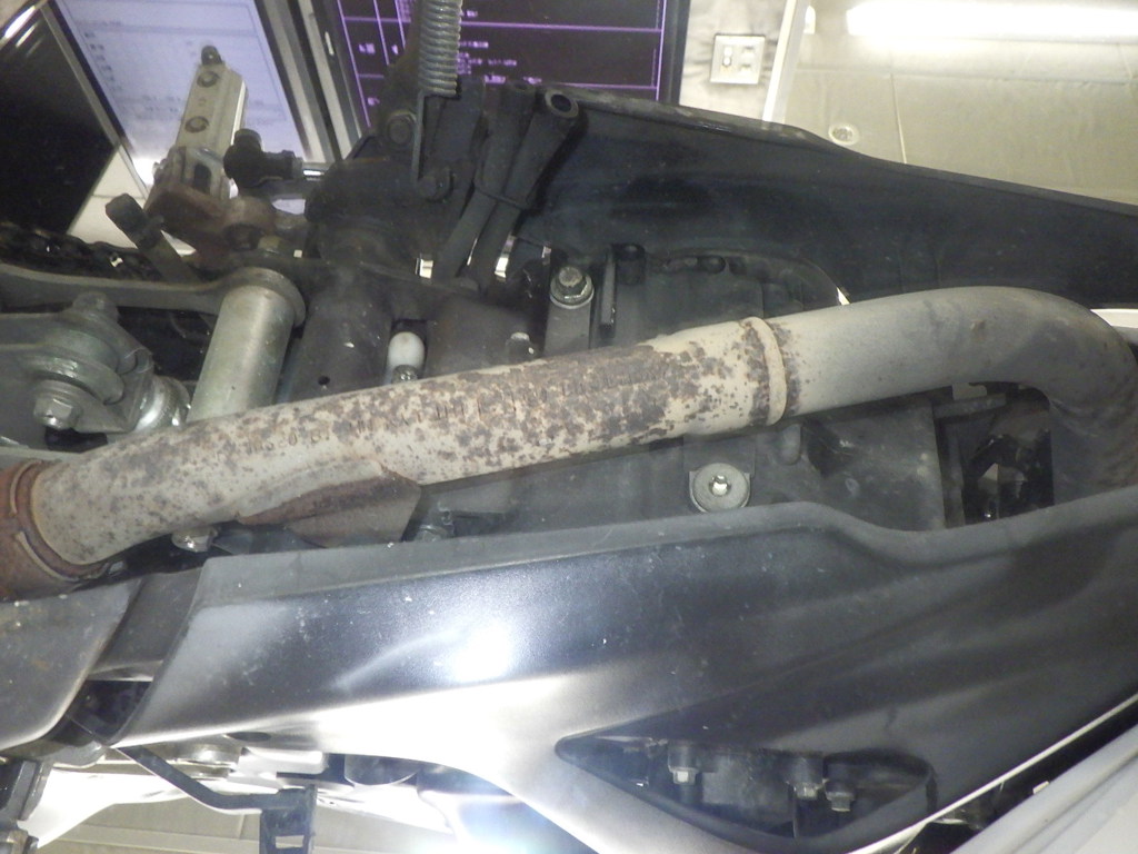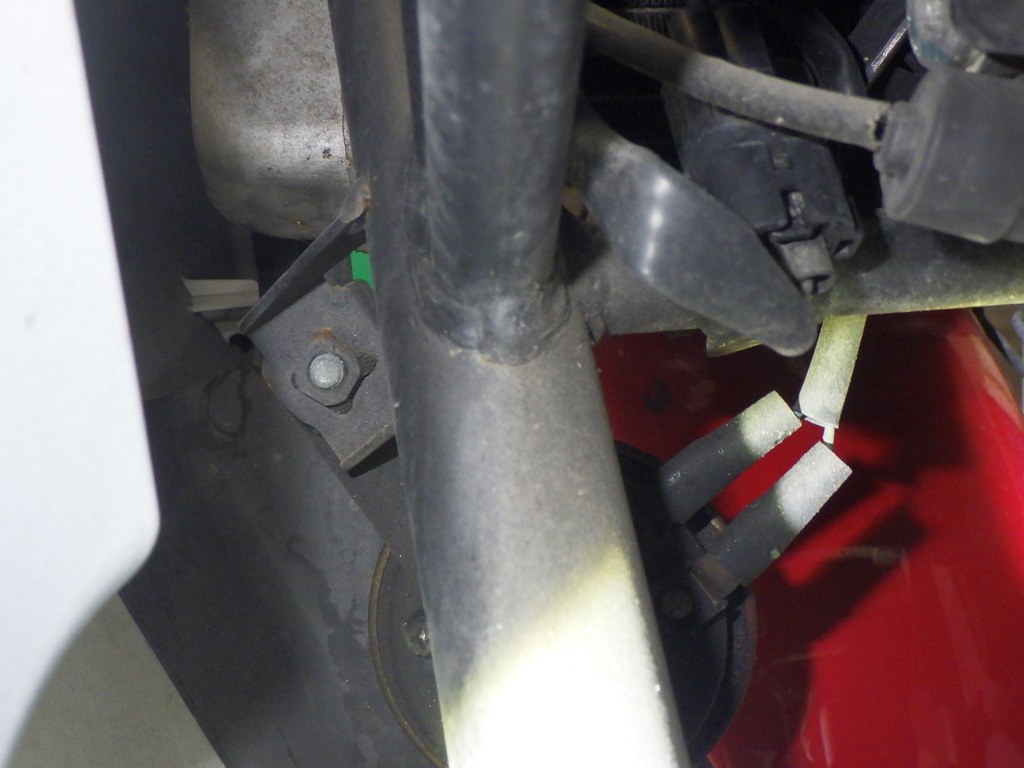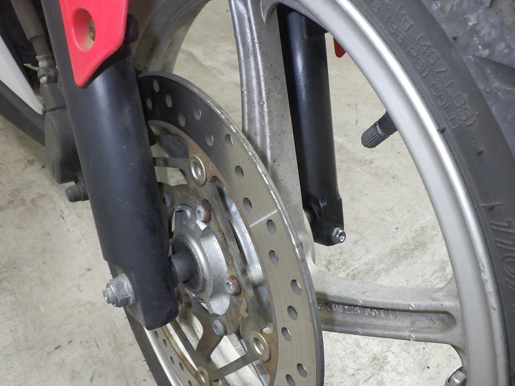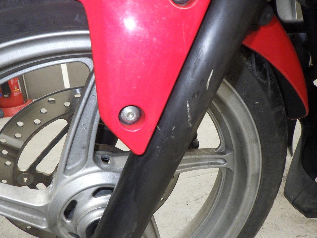 | внешняя часть вилки | царапины <много>, следы коррозии <много>, paintswelled <средне>, потек масла <много> |
