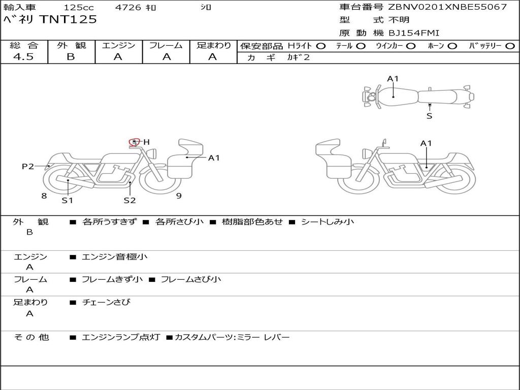 | Номер рамы / VIN | ZBNV0201XNBE55067 |