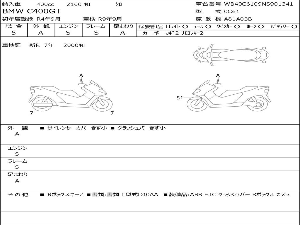 | Номер рамы / VIN | WB40C6109NS901341 |
