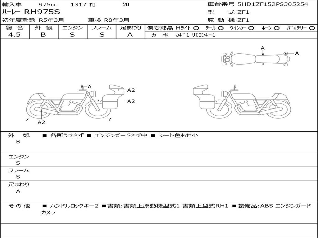 | Номер рамы / VIN | 5HD1ZF152PS305254 |