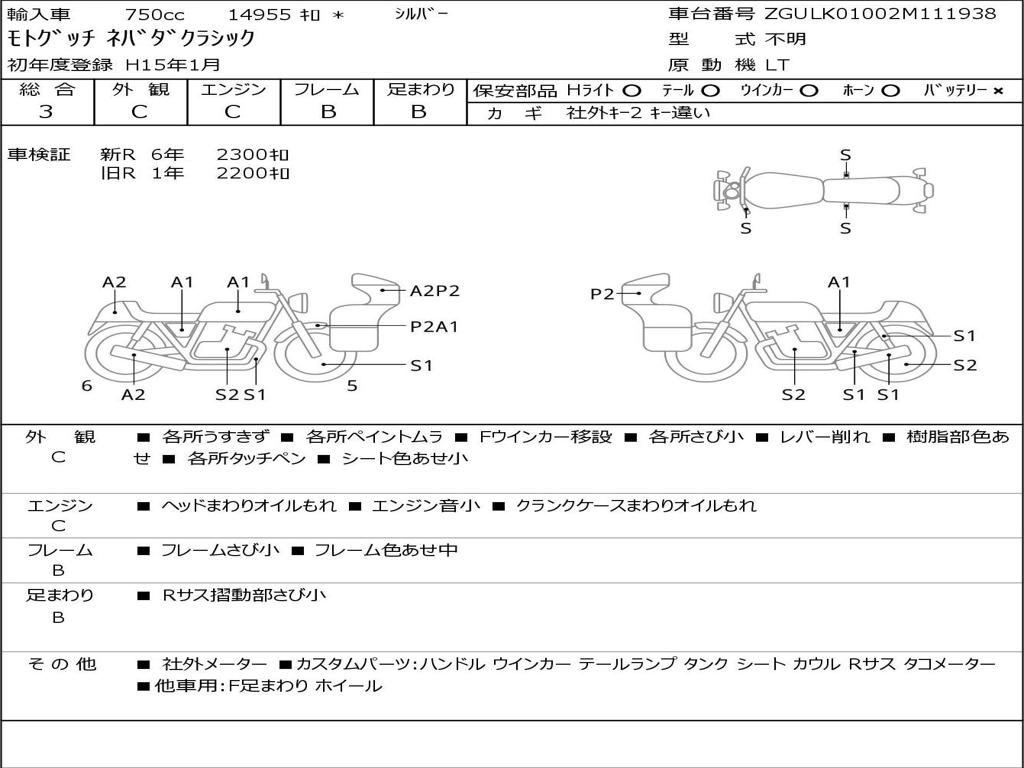 | Номер рамы / VIN | ZGULK01002M111938 |