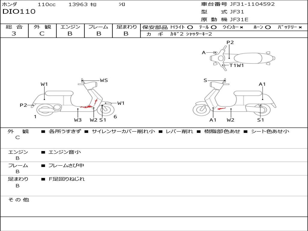 | Номер рамы / VIN | JF31-1104592 |