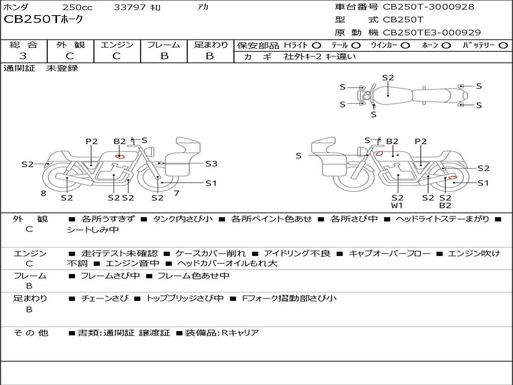 | Номер рамы / VIN | CB250T-3000928 |
