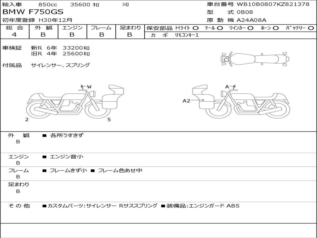 | Номер рамы / VIN | WB10B0807KZ821378 |