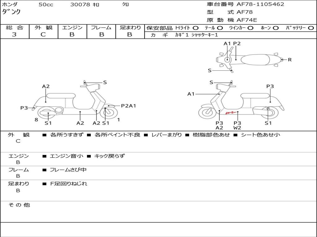 | Номер рамы / VIN | AF78-1105462 |