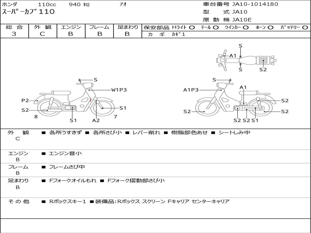 | Номер рамы / VIN | JA10-1014180 |