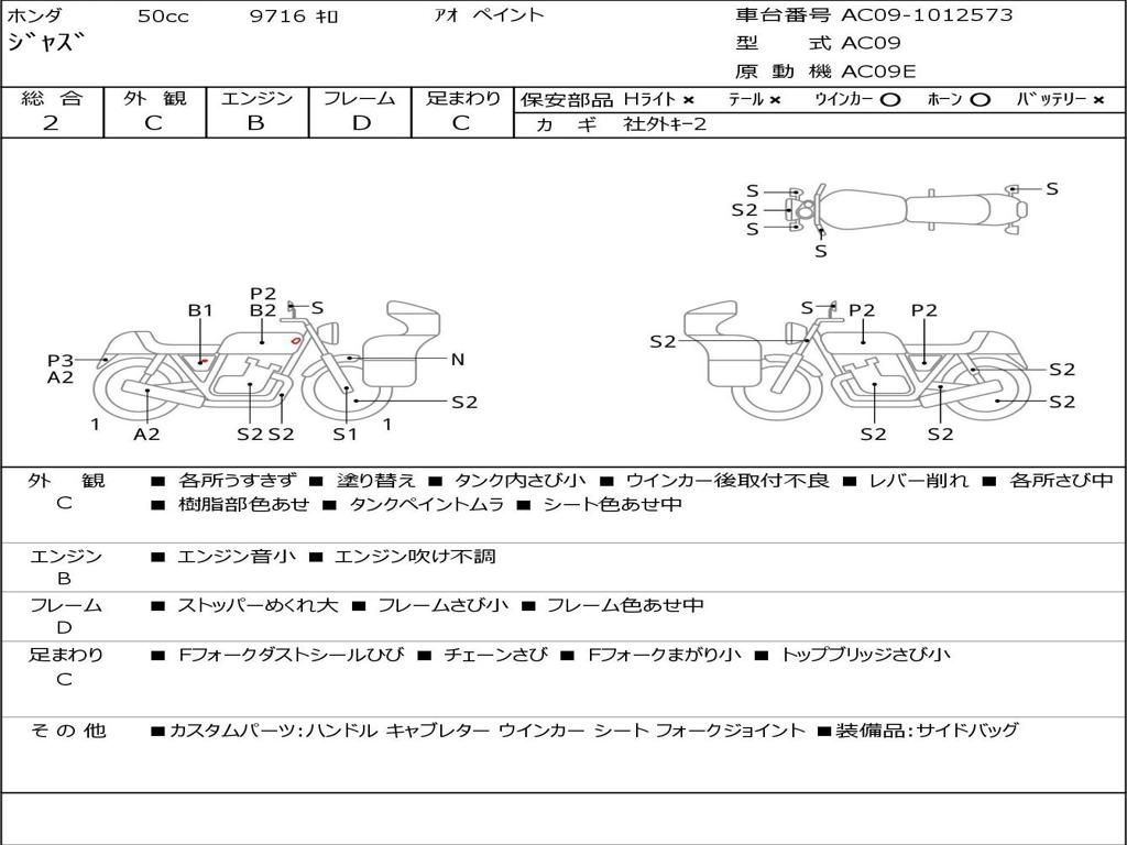 | Номер рамы / VIN | AC09-1012573 |