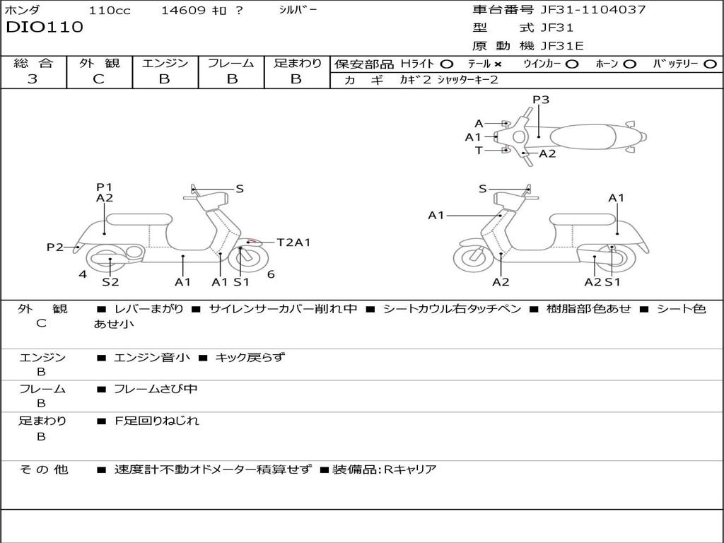 | Номер рамы / VIN | JF31-1104037 |