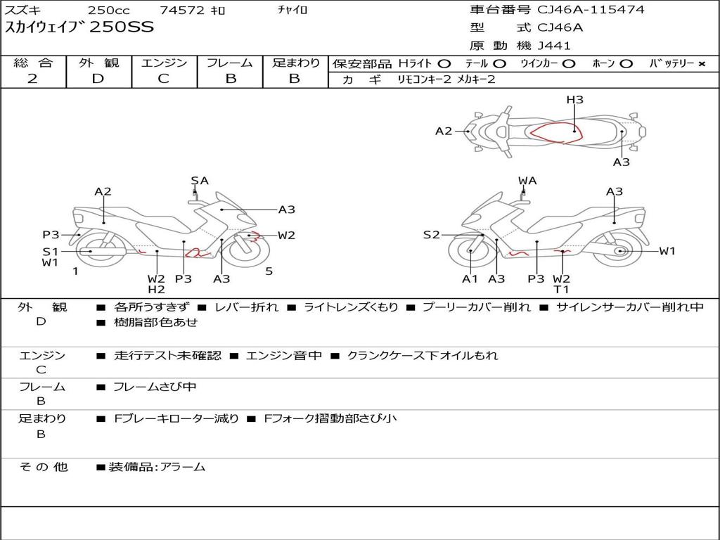 | Номер рамы / VIN | CJ46A-115474 |