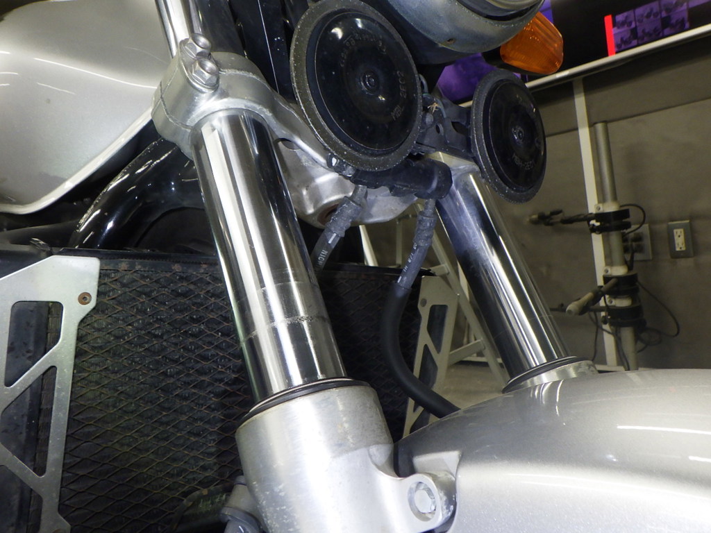 | внешняя часть вилки | следы коррозии <много>, потек масла, неисправен сальник |