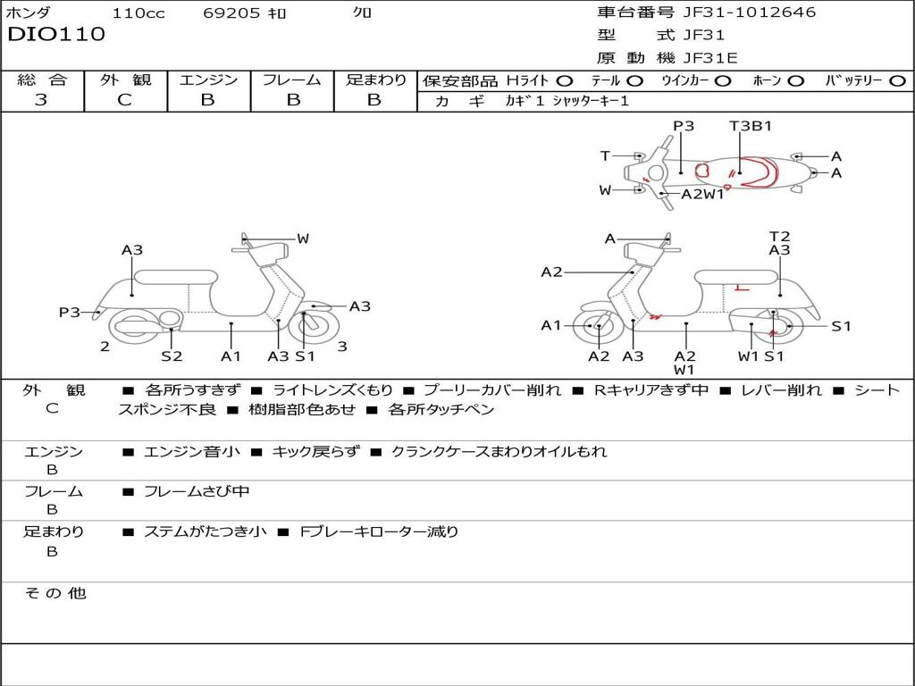 | Номер рамы / VIN | JF31-1012646 |