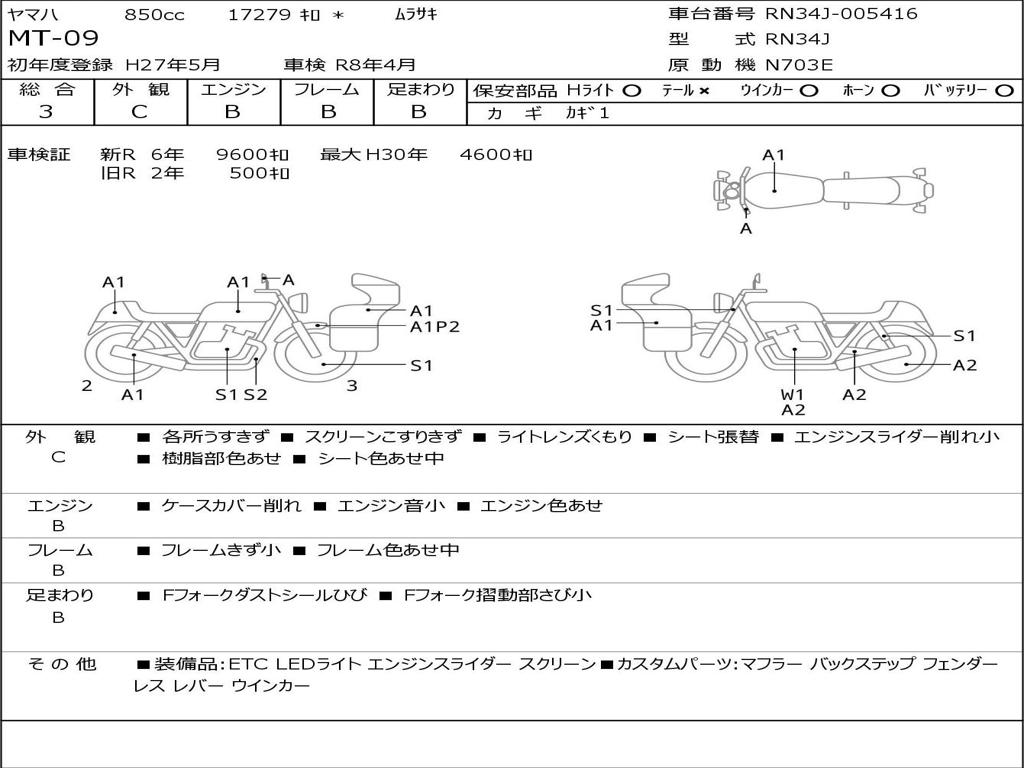 | Номер рамы / VIN | RN34J-005416 |