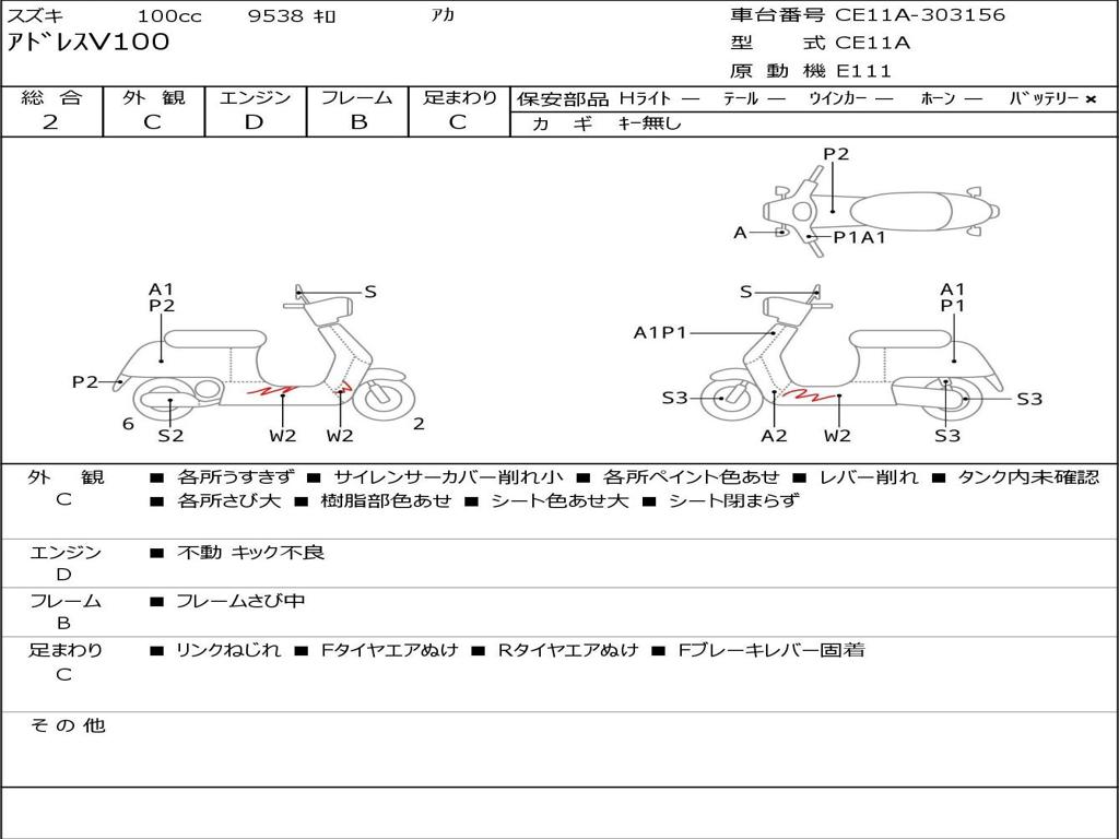 | Номер рамы / VIN | CE11A-303156 |