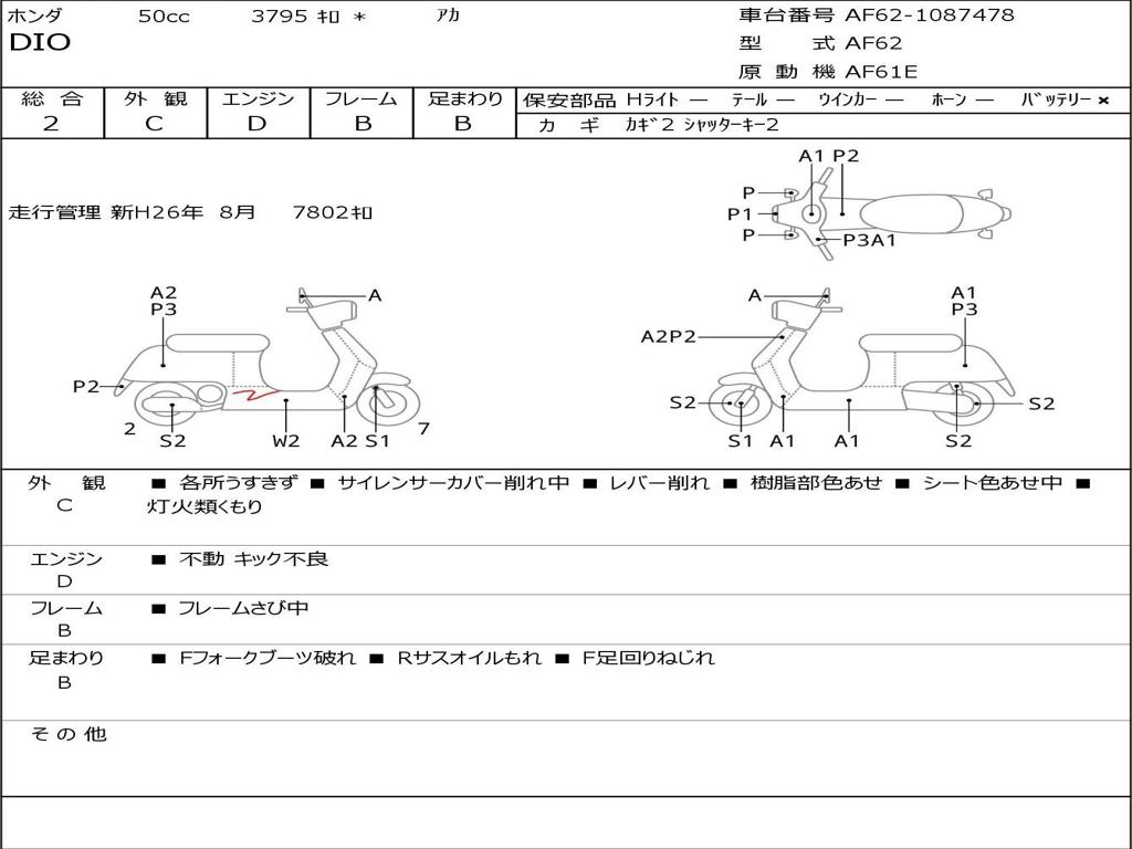 | Номер рамы / VIN | AF62-1087478 |