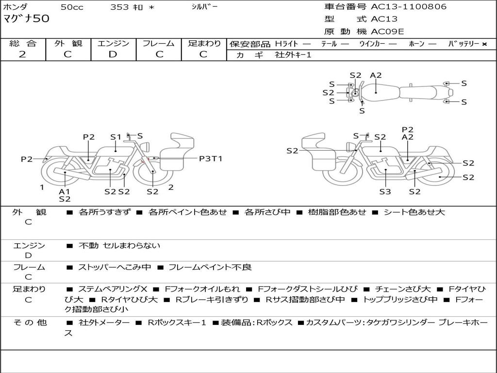 | Номер рамы / VIN | AC13-1100806 |