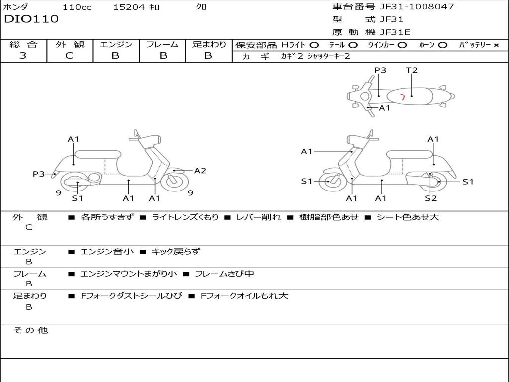 | Номер рамы / VIN | JF31-1008047 |