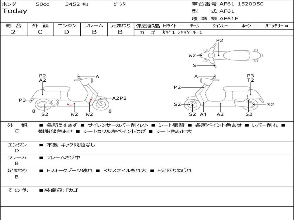 | Номер рамы / VIN | AF61-1520950 |