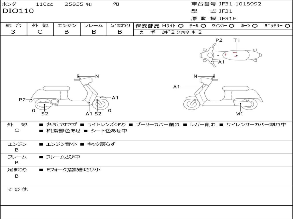 | Номер рамы / VIN | JF31-1018992 |