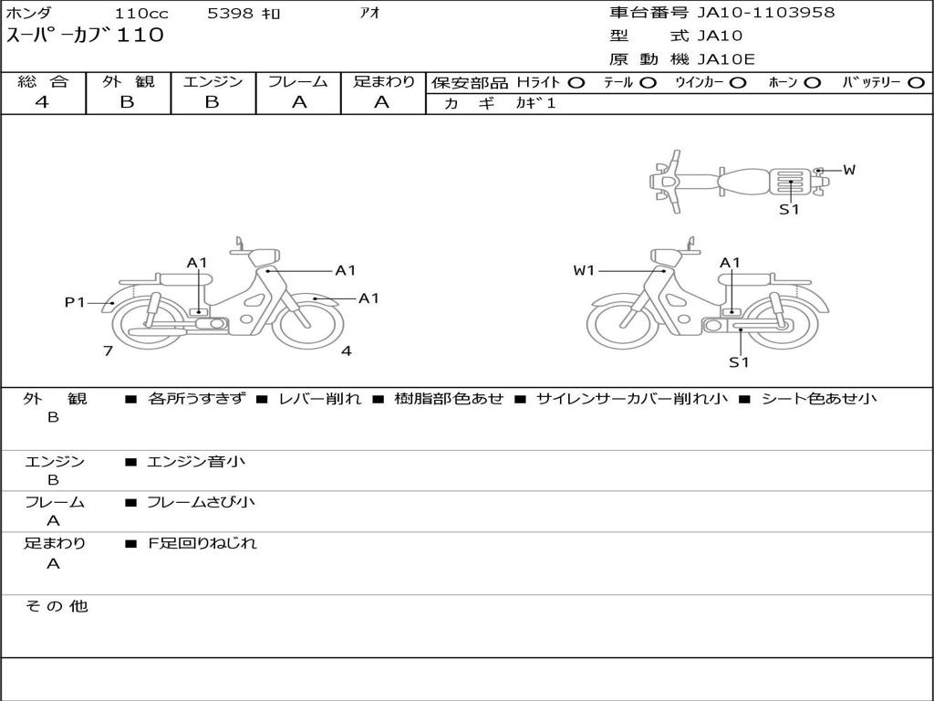| Номер рамы / VIN | JA10-1103958 |