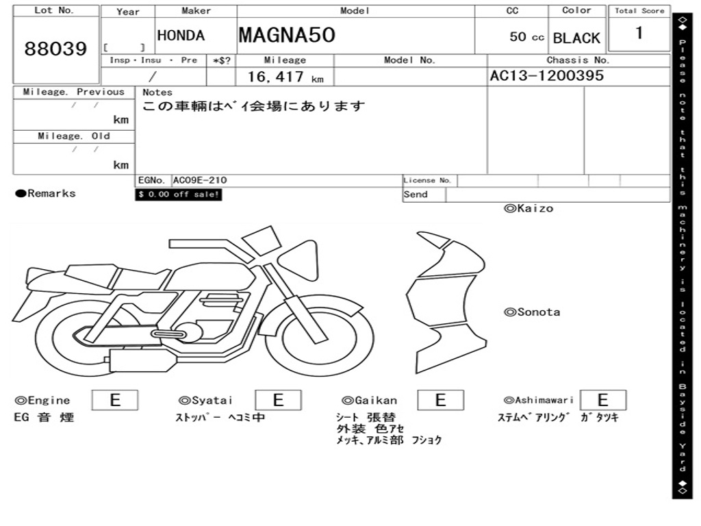 | Аукцион | ARAI BAYSIDE |