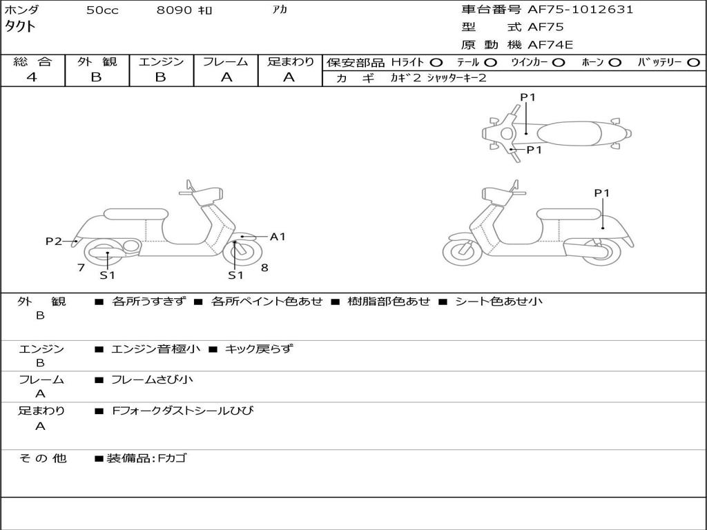 | Номер рамы / VIN | AF75-1012631 |