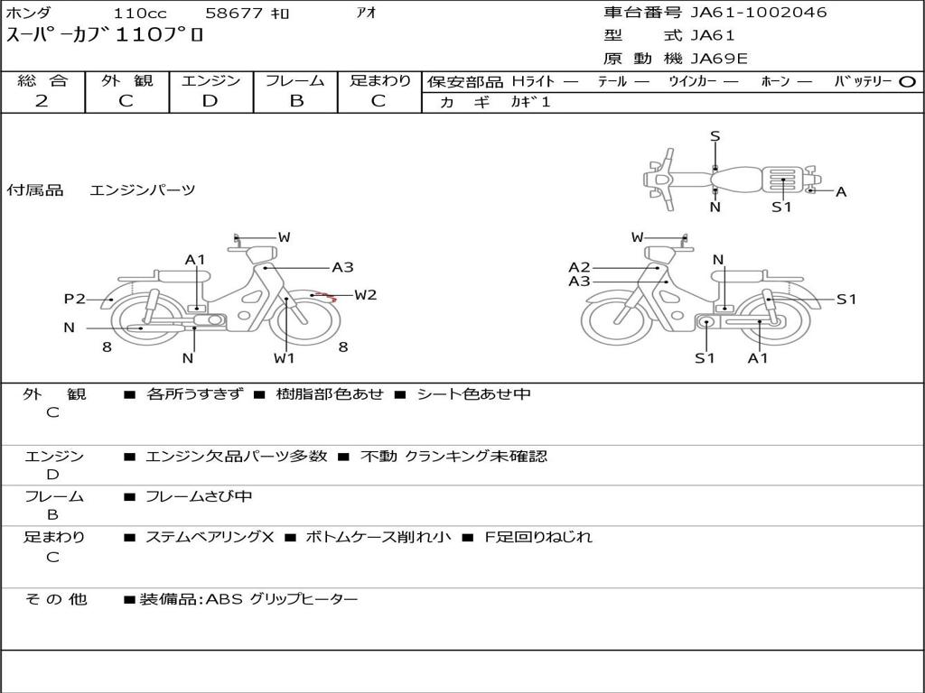 | Номер рамы / VIN | JA61-1002046 |