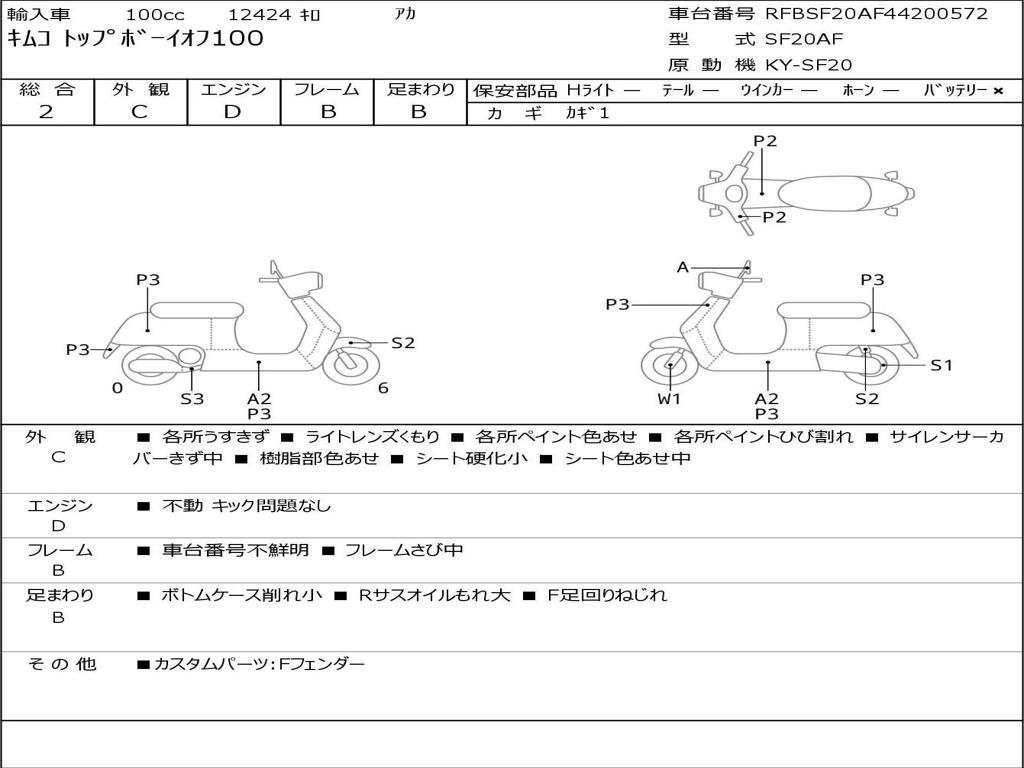 | Номер рамы / VIN | RFBSF20AF44200572 |
