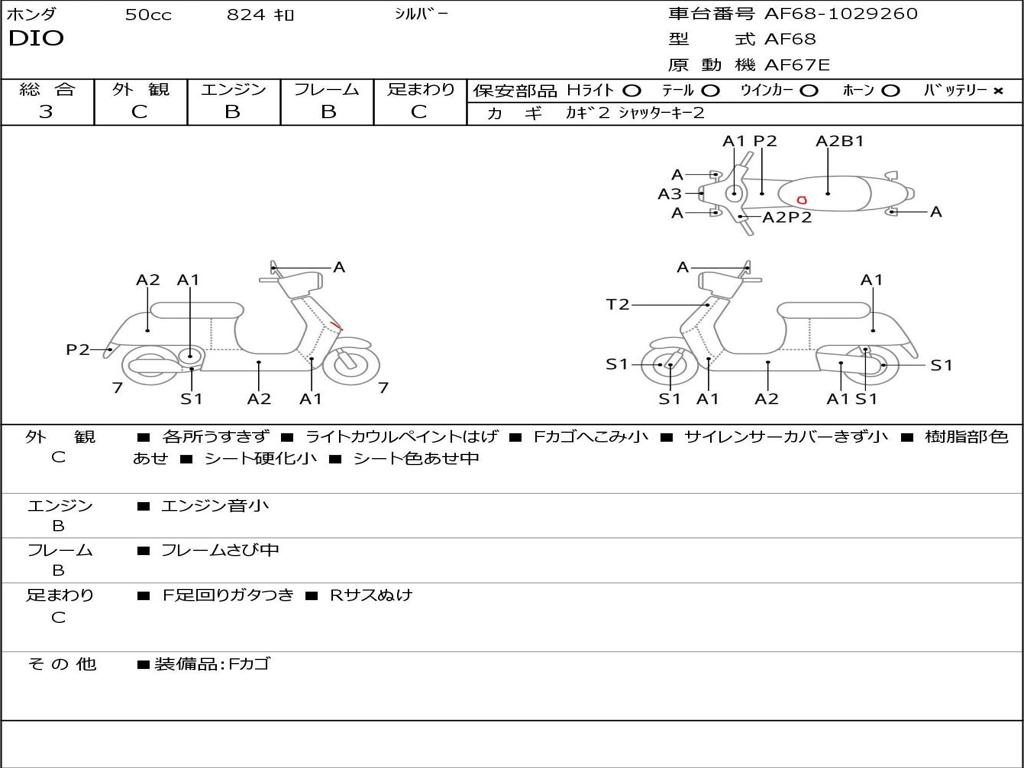 | Номер рамы / VIN | AF68-1029260 |
