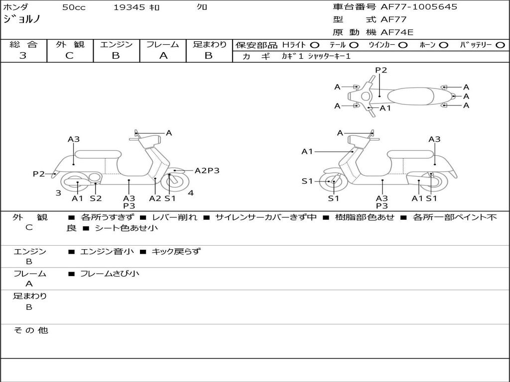 | Номер рамы / VIN | AF77-1005645 |