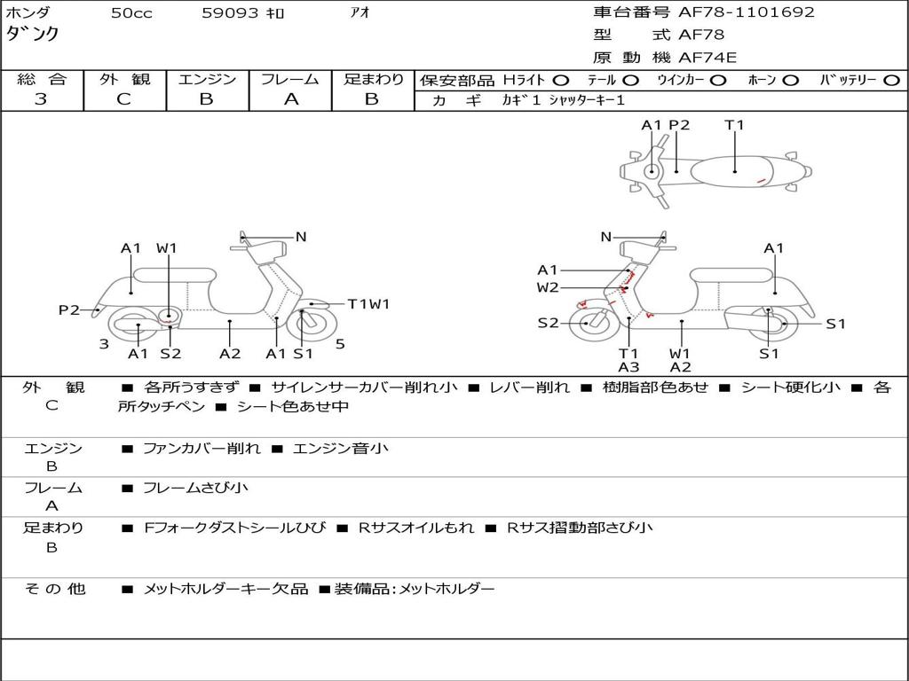 | Номер рамы / VIN | AF78-1101692 |