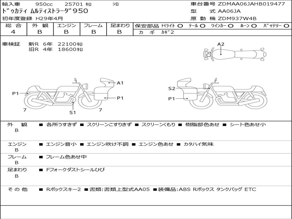 | Номер рамы / VIN | ZDMAA06JAHB019477 |