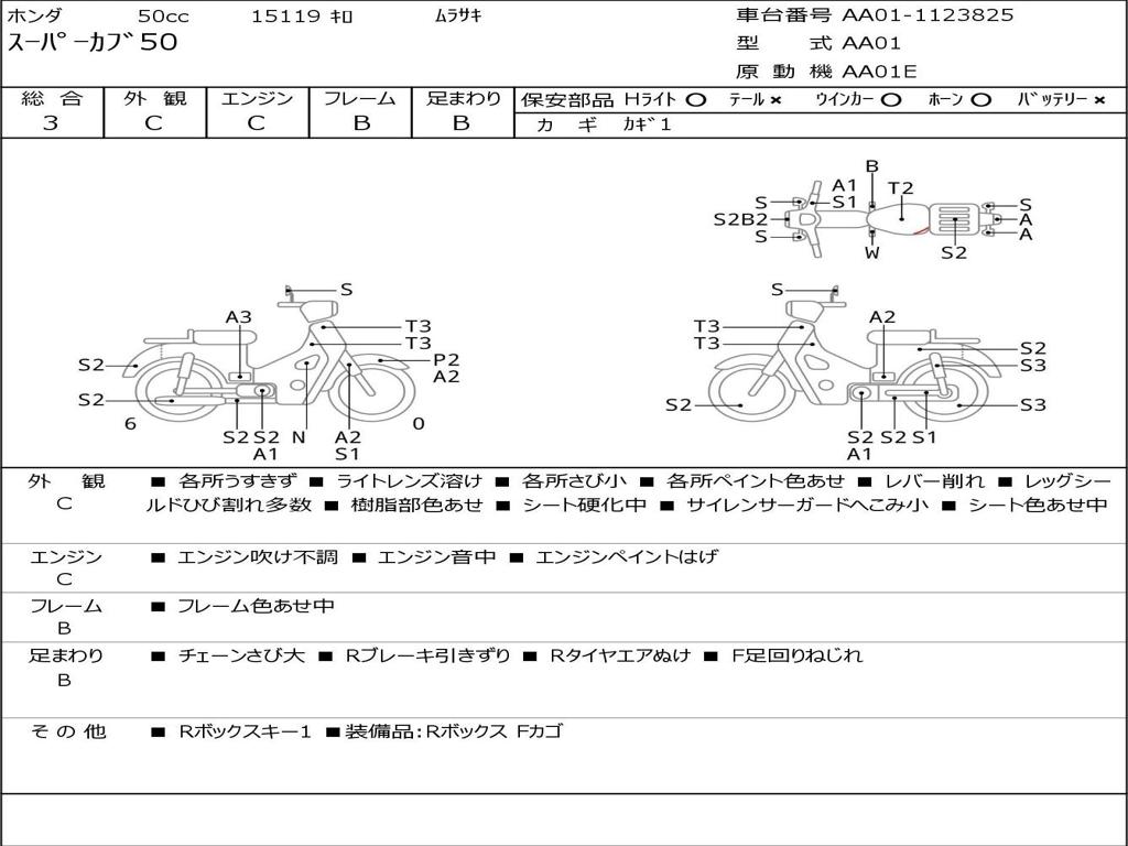 | Номер рамы / VIN | AA01-1123825 |