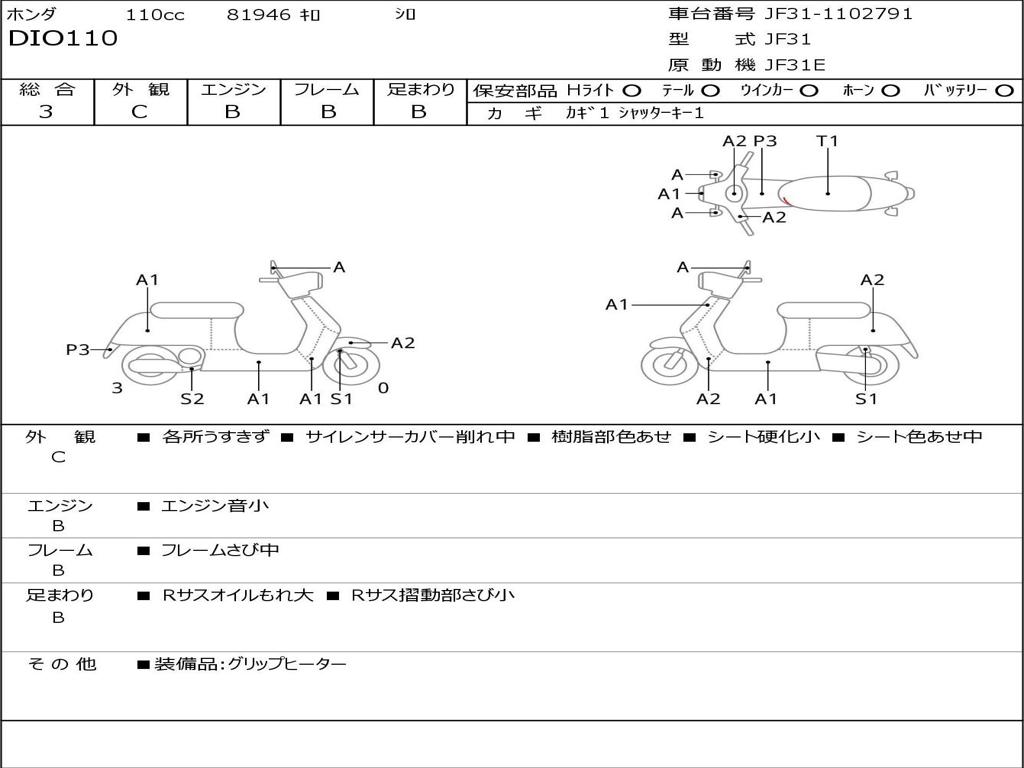 | Номер рамы / VIN | JF31-1102791 |