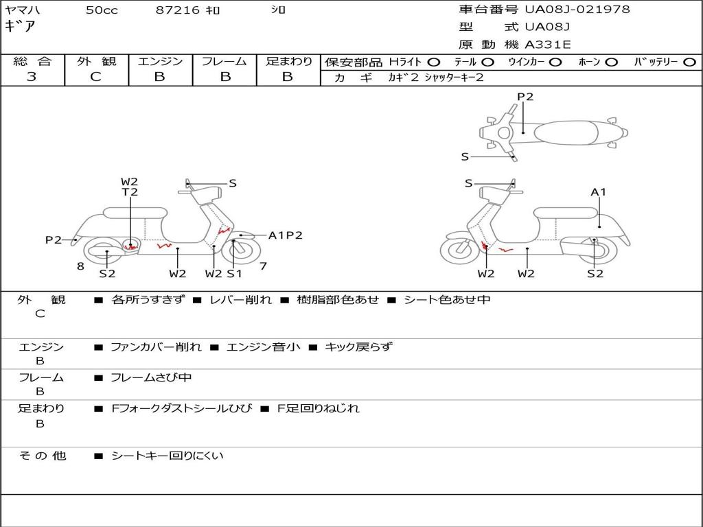 | Номер рамы / VIN | UA08J-021978 |