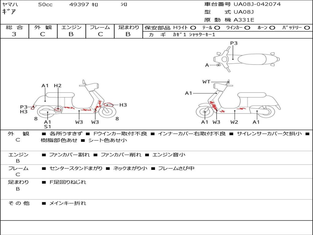 | Номер рамы / VIN | UA08J-042074 |