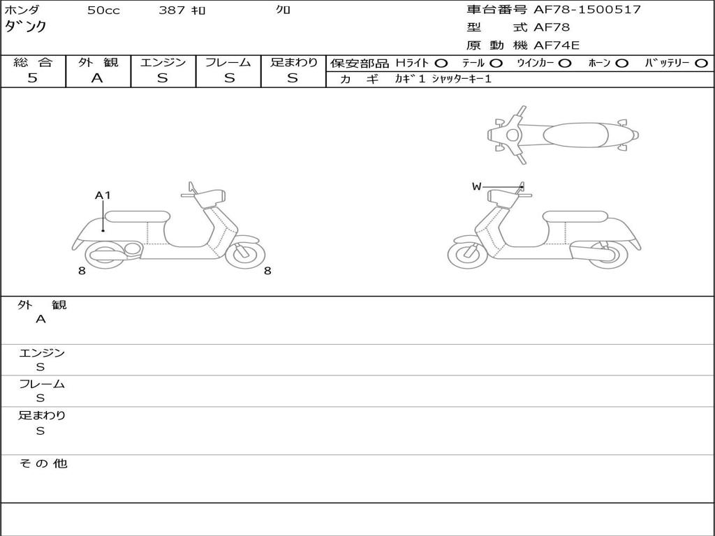| Номер рамы / VIN | AF78-1500517 |