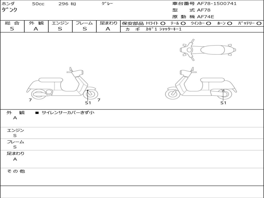 | Номер рамы / VIN | AF78-1500741 |
