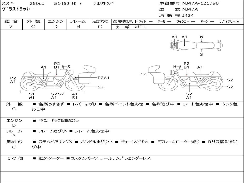 | Номер рамы / VIN | NJ47A-121798 |