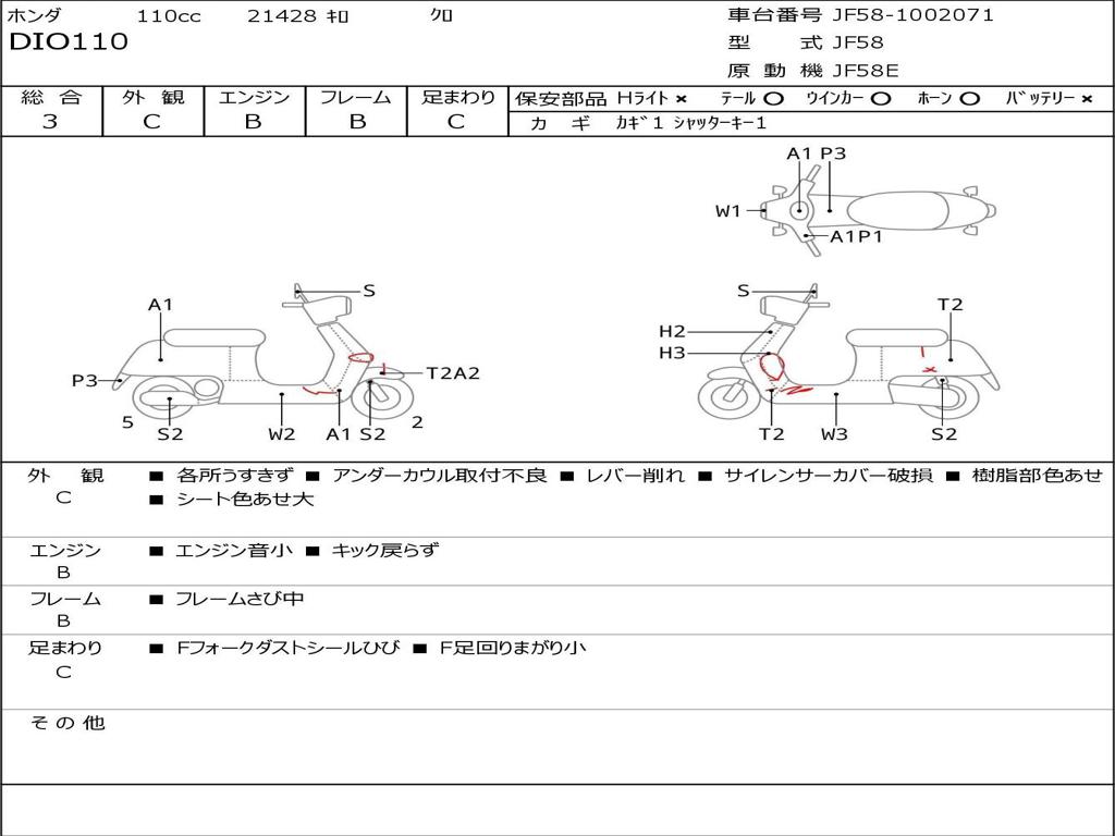 | Номер рамы / VIN | JF58-1002071 |