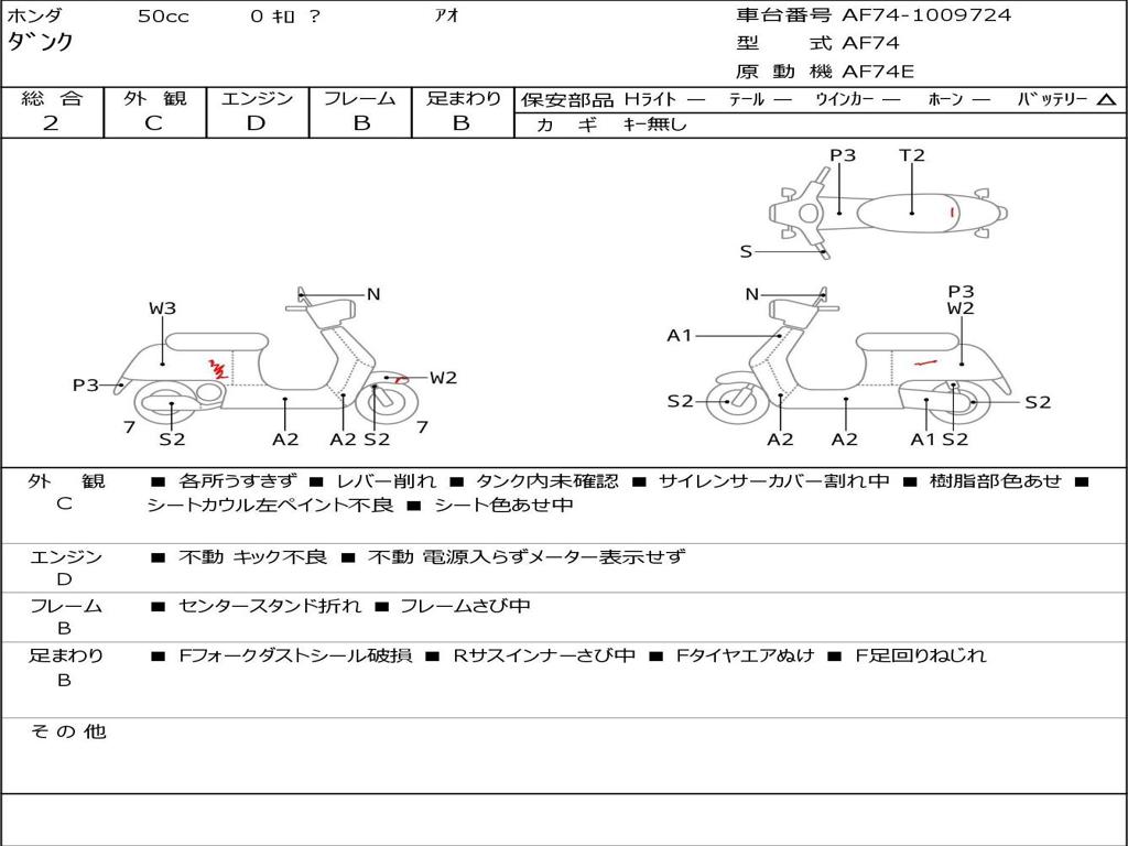 | Номер рамы / VIN | AF74-1009724 |