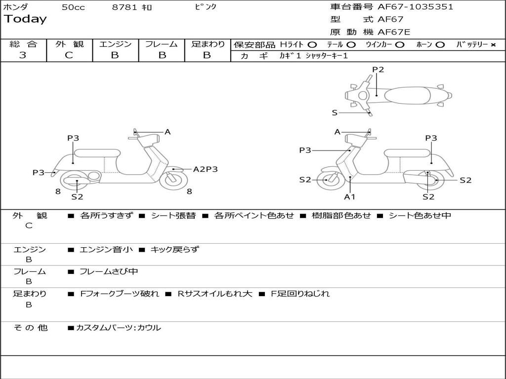 | Номер рамы / VIN | AF67-1035351 |