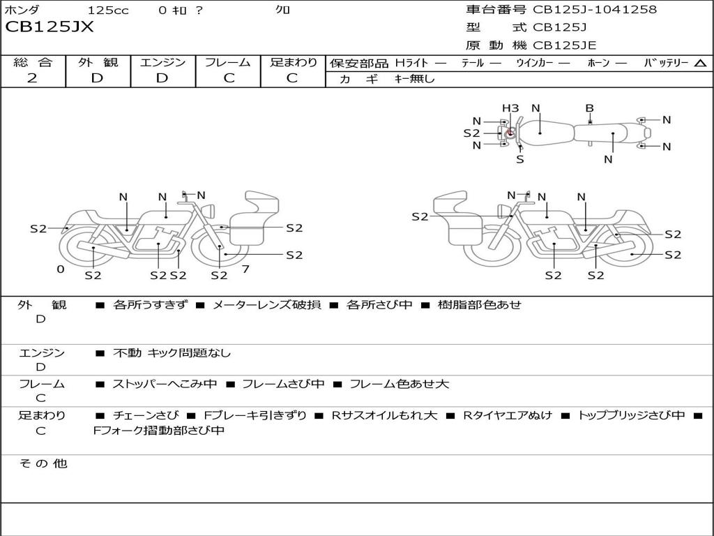 | Номер рамы / VIN | CB125J-1041258 |
