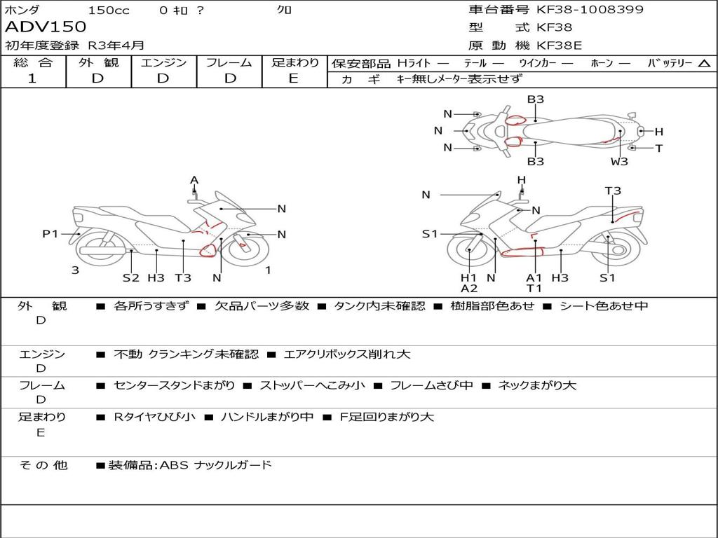 | Номер рамы / VIN | KF38-1008399 |