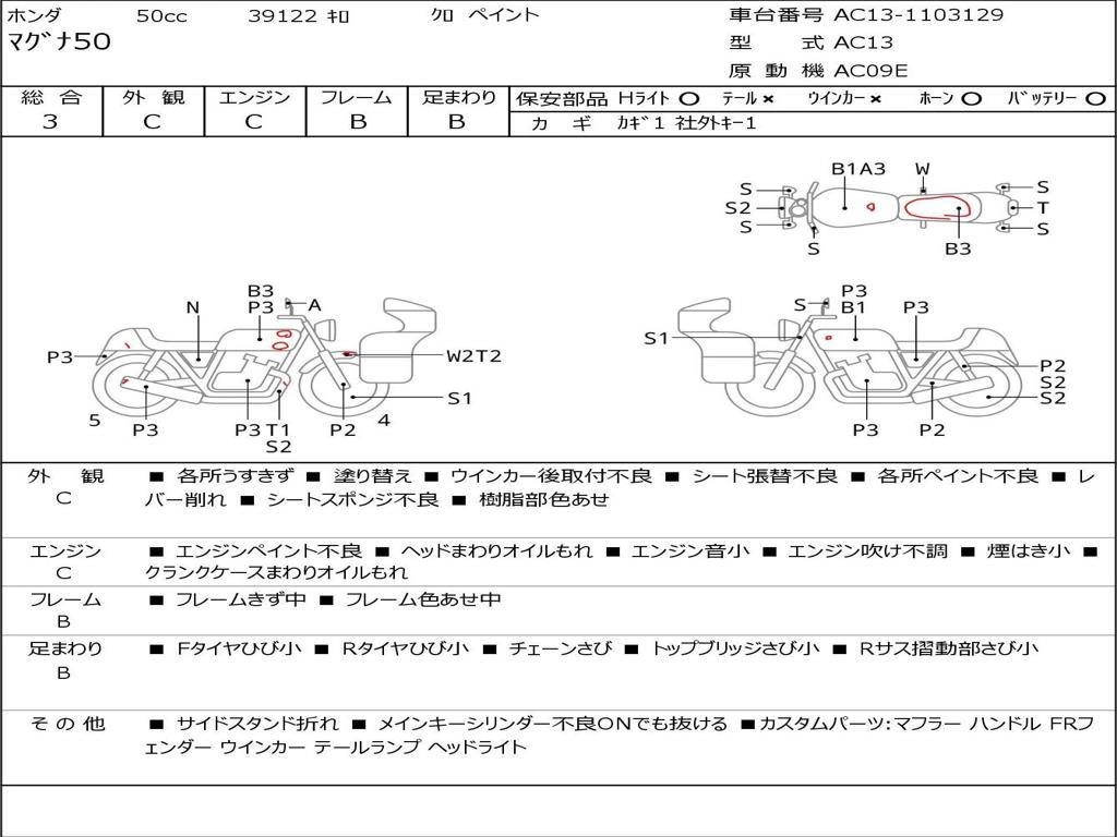 | Номер рамы / VIN | AC13-1103129 |