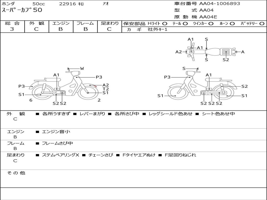 | Номер рамы / VIN | AA04-1006893 |