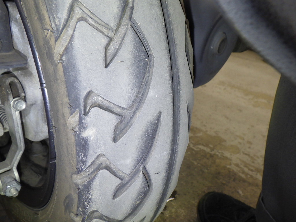| шина | трещины, требует замены |