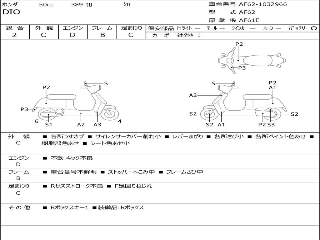 | Номер рамы / VIN | AF62-1032966 |