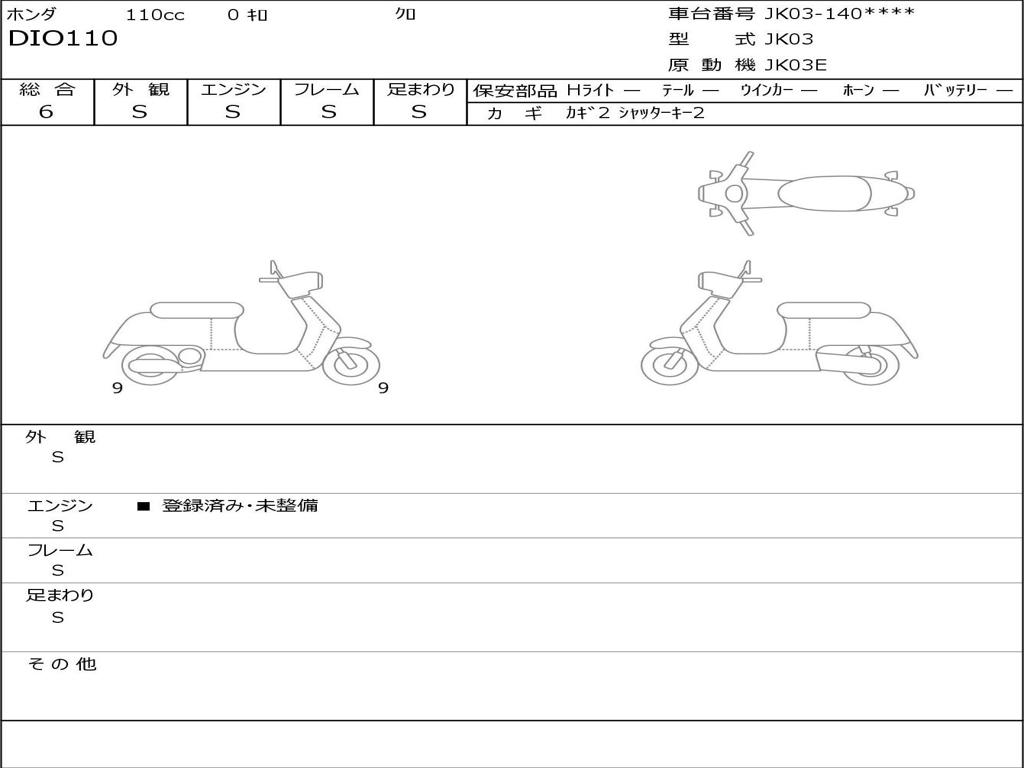 | Номер рамы / VIN | JK03-1406628 |