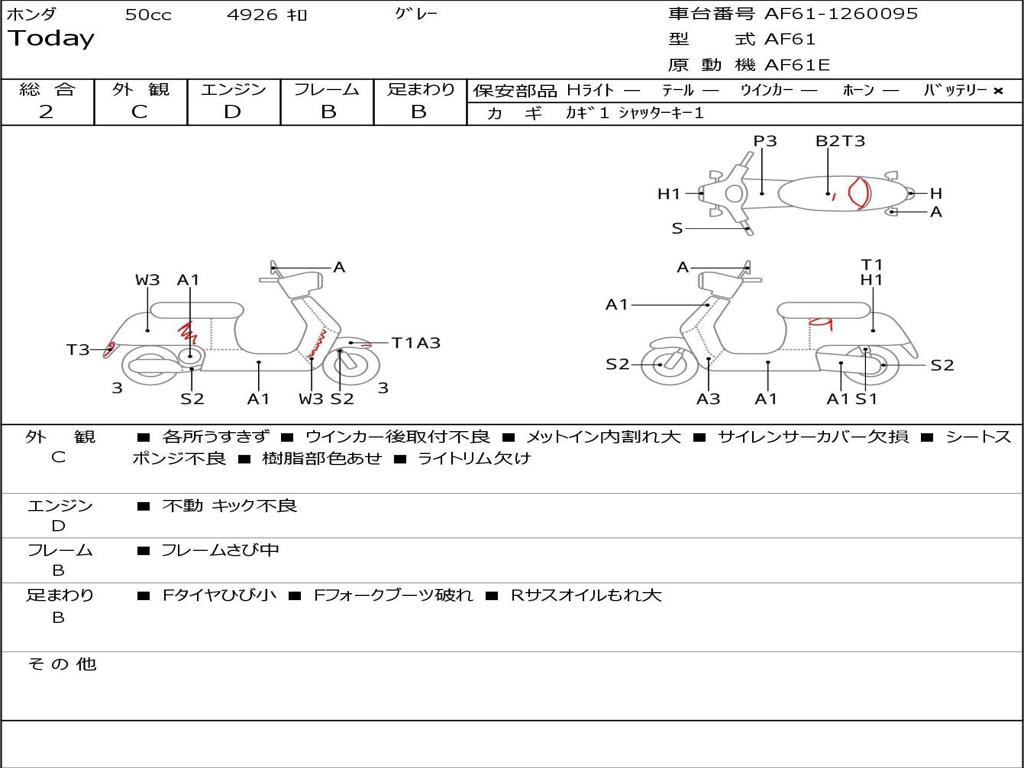 | Номер рамы / VIN | AF61-1260095 |